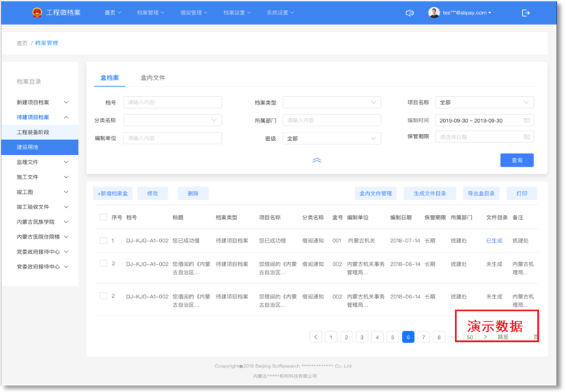 系統實現從工程立項審批、招投標、勘察、設計、施工、建立到竣工驗收等工程建設過程形成的包括報建、報批、施工圖紙、會議紀要、施工日志、聲像、進度表等工程項目資料進行電子信息存檔和管理。系統功能包括檔案盒管理、盒內文件管理、檔案類型設置、分類設置、項目基本信息設置、檔案檢索、檔案借閱管理、生成盒內目錄、生成文件目錄、生成文件目錄二維碼、生成檔案盒脊背條目等,可通過系統對工程微檔案資料進行整理收集、檔案入盒、檔案檢索、檔案借閱,實現工程微檔案資料的數字化管理。產品原型展示如下: